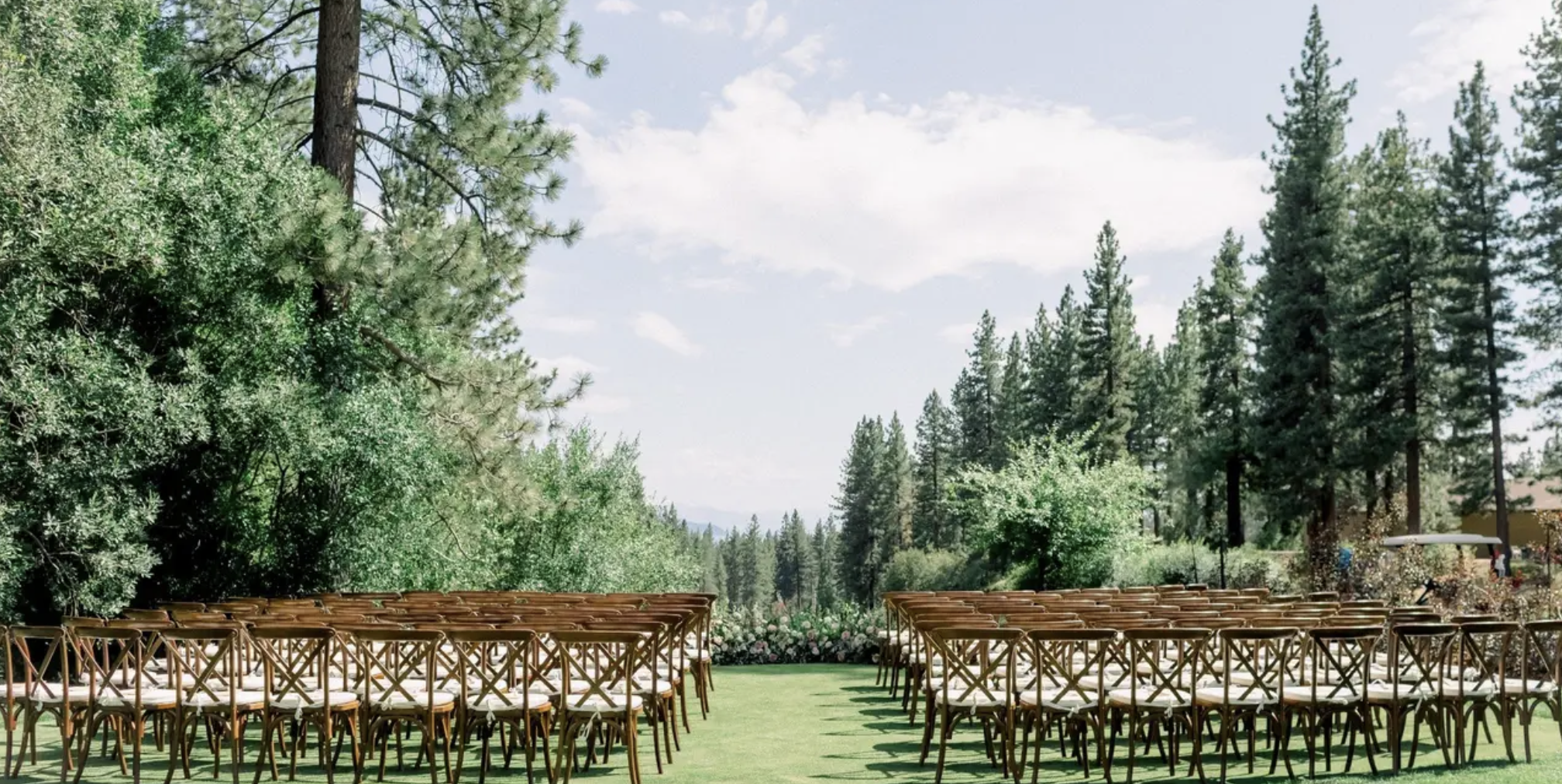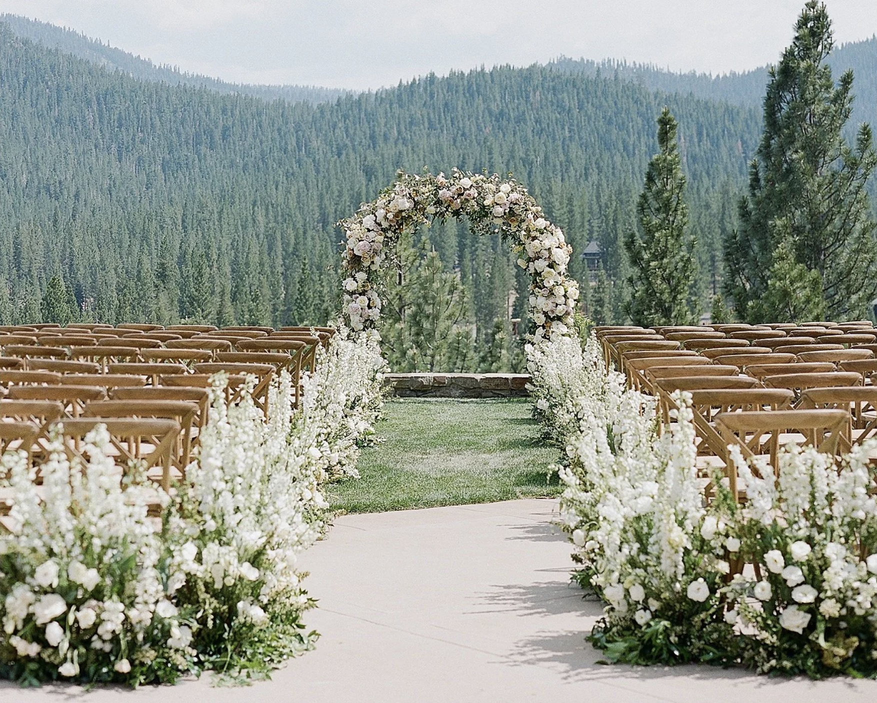 Florist Insider Tip: The towering pines and natural landscape are already spectacular. Frame key areas with flowers rather than trying to compete with nature. A beautifully floraled ceremony space near the lake with the mansion as backdrop creates unforgettable photos.