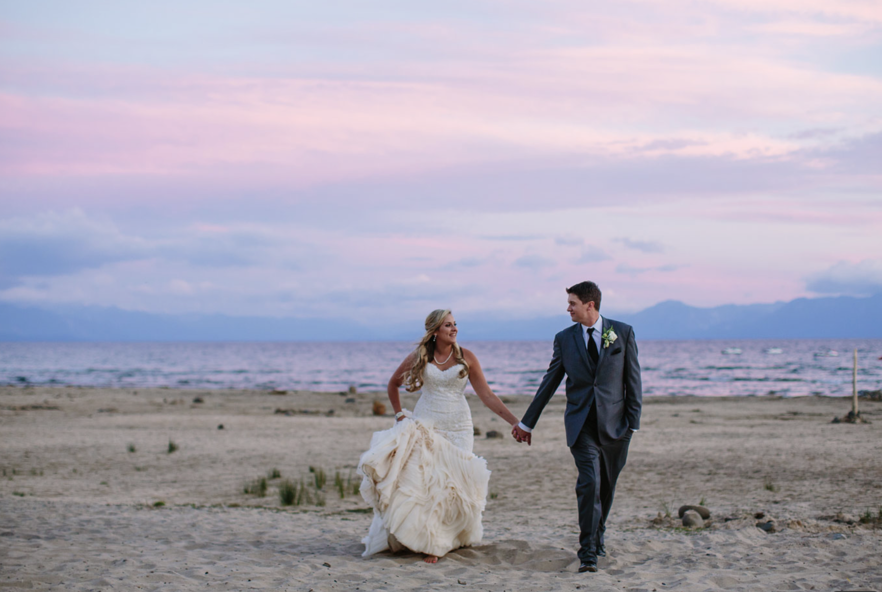 This historic lakeside estate features a charming 1903 mansion surrounded by towering pine trees and manicured lawns leading to a pristine beach. The venue offers a romantic, vintage feel with its historic architecture, while the natural surroundings provide a classic Tahoe mountain-meets-lake setting. Perfect for couples who appreciate history and natural beauty.